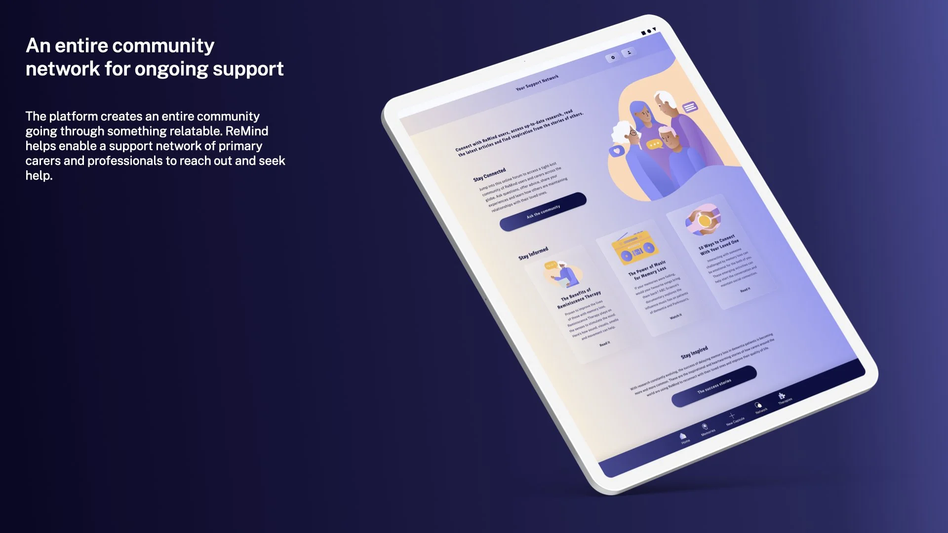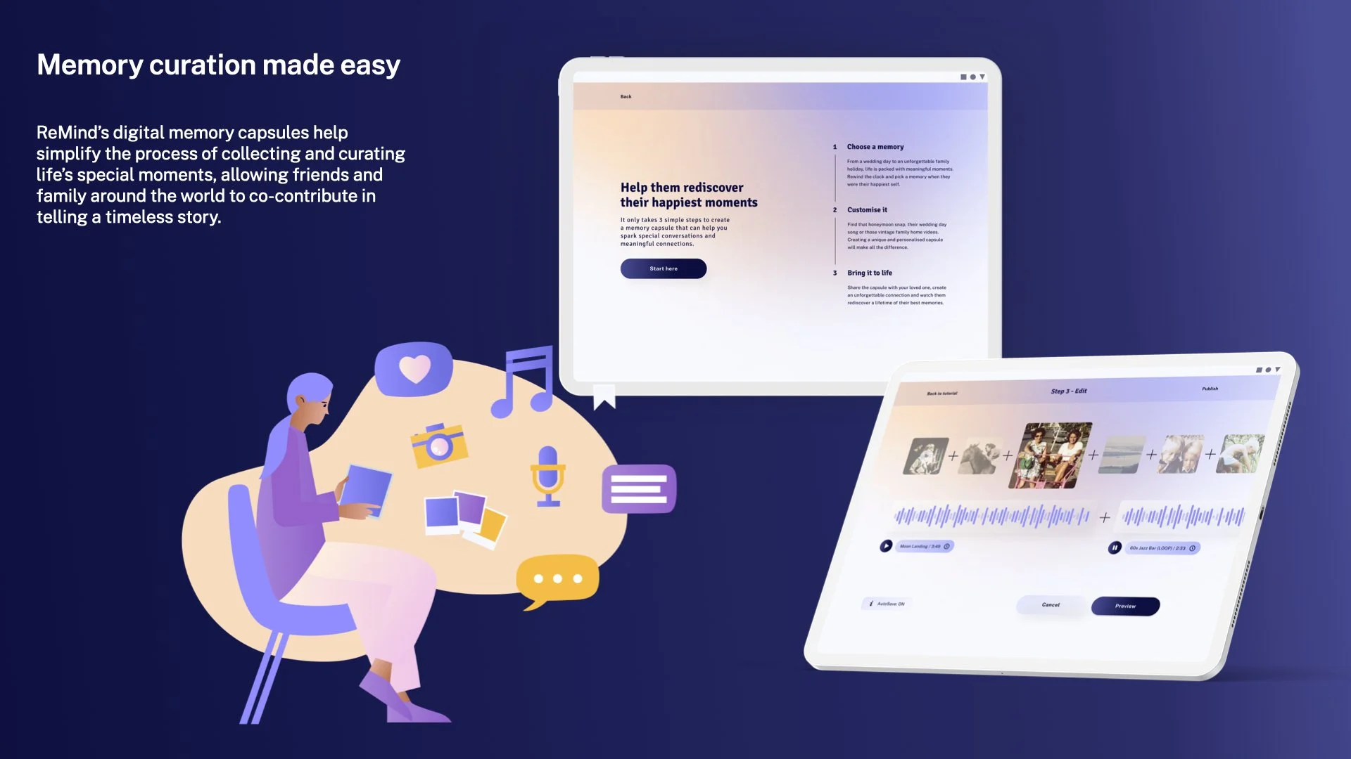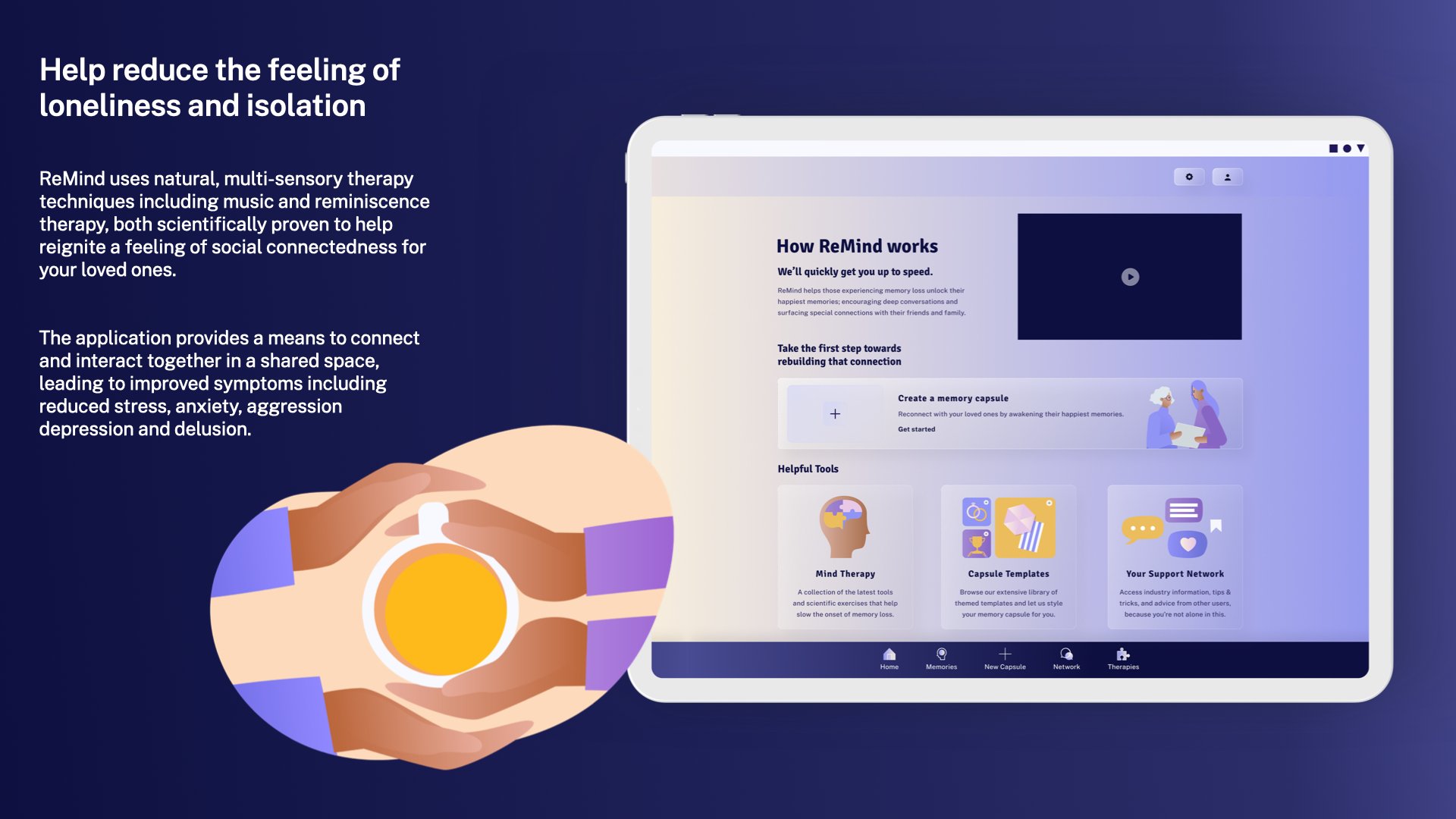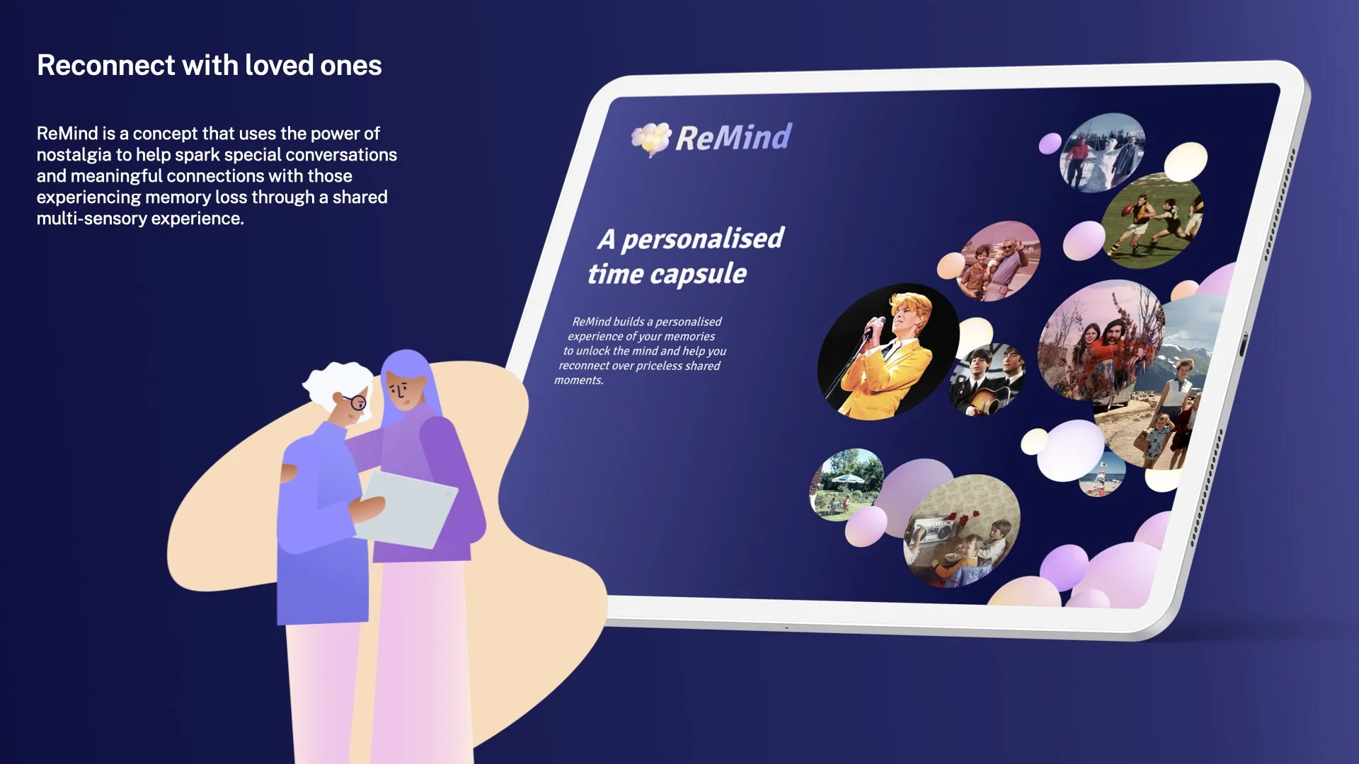 ReMind is a concept that uses the power of nostalgia to help spark special conversations and meaningful connections with those experiencing memory loss through a shared multi-sensory experience.